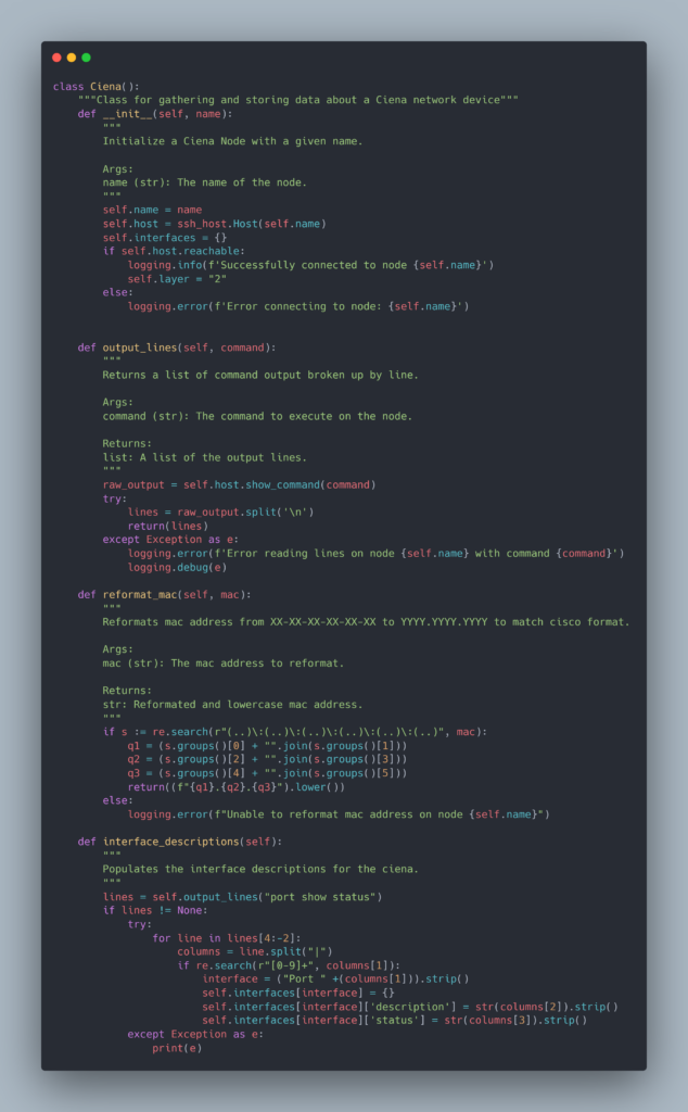 Example of a Class written to gather network node details